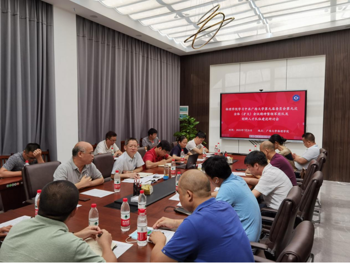 为了学习党的十九届六中全会、习近平总书记关于人才工作的重要论述等有关精神,落实学校党委关于人才团队发展部署,建设高质量学科团队,推进有组织的科研、深化合作、打造服务国家战略的科技力量和人才培养基地,2022年7月26日,我院在天象厅会议室召开了学习中共广西大学第九届委员会第九次全体(扩大)会议精神暨领军团队及创新人才队伍建设研讨会。会议由学院党委书记袁涛主持,学院领导班子成员、君武学者、学术骨干参会。
