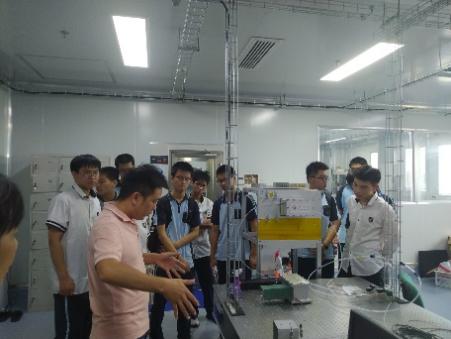 7月10日,西大附中研学团的同学们先后参观了物理学院的洁净实验室、蓝色能源实验室、天象厅等,实验室里陈列的先进仪器,吸引了同学们的目光,亦激起了他们无限的好奇。