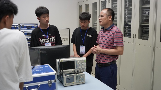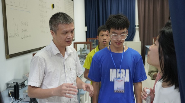 7月11日,那坡中学研学团的同学们先后参观了我院的洁净实验室、光学实验室等,面对从未见过的实验仪器,他们秉承求知之心,向实验室负责老师提出了自己的疑问,而老师们也都耐心地向他们讲解实验原理与仪器使用方法。