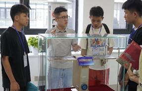 7月12日、13日,分别接待了来自西大第一附属幼儿园大班、中班的全体小朋友们,在我院九楼的学术研讨空间外,陈列着许多由我院师生参与研发的作品,孩子们近距离接触了科技的美,聆听服务团的讲解,从小在心里种下“科研的种子”。