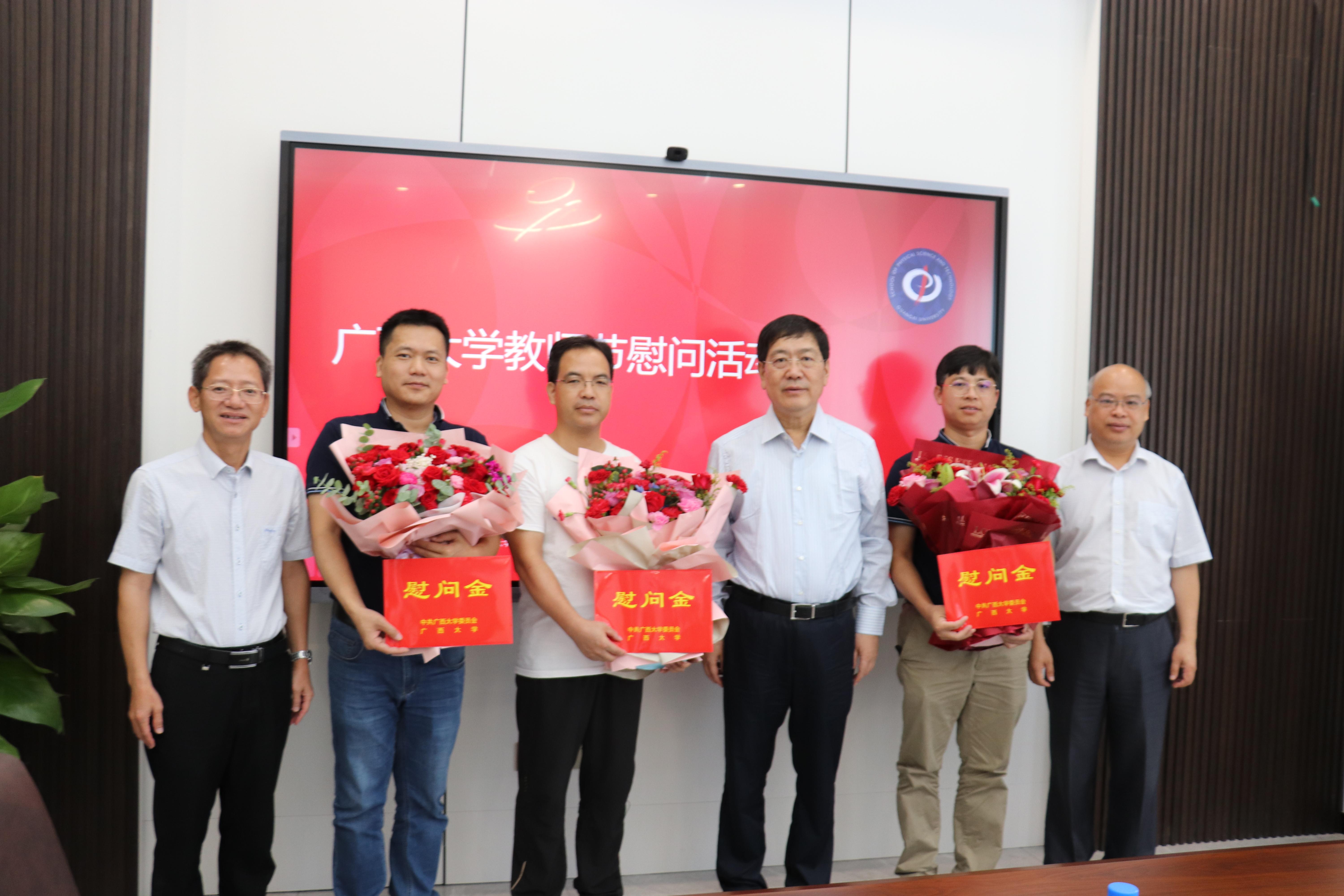 9月10日上午,校长赵跃宇代表学校到我院慰问黎光旭、刘宏邦、王祥高老师,并向全体教职员工送上教师节的问候与祝福,感谢大家在学校发展中的辛勤付出。