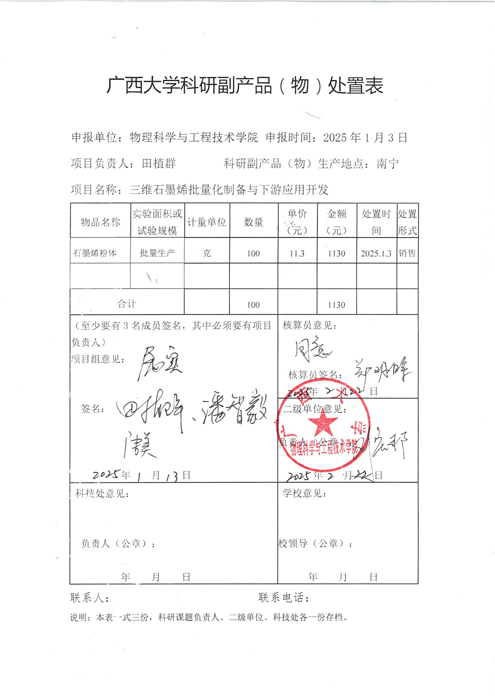 按照《广西大学科研副产品(物)管理办法(试行)》规定,经项目负责人田植群教授申请,现对其课题组科研副产品(物)处置情况公示,公示期2025年2月24日-3月2日。
