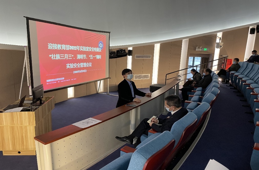 3月29日,我院在学院天象馆召开实验室负责人及安全责任人会议,对迎接教育部实验室安全检查进行动员,对广西三月三、清明节、五一节假日期间实验安全管理工作进行部署。会上,党委书记袁涛强调要对实验室安全隐患进行“全过程、全要素、全覆盖”排查,以教育部有关文件精神为行动指南,以良好的状态迎接教育部实验室安全检查。常务副院长王祥高布置了近期实验室安全重点工作,指出开展此次实验室安全大检查的重要性和必要性。院长助理、实验中心主任陆翔对教育部2022年高等学校实验室安全检查工作的背景、要求和工作安排进行了说明,并对实验室安全自查自纠做了具体安排,要求各实验室在广西三月三、清明节、“五一”等假期期间落实好假期使用备案和值班巡查制度。