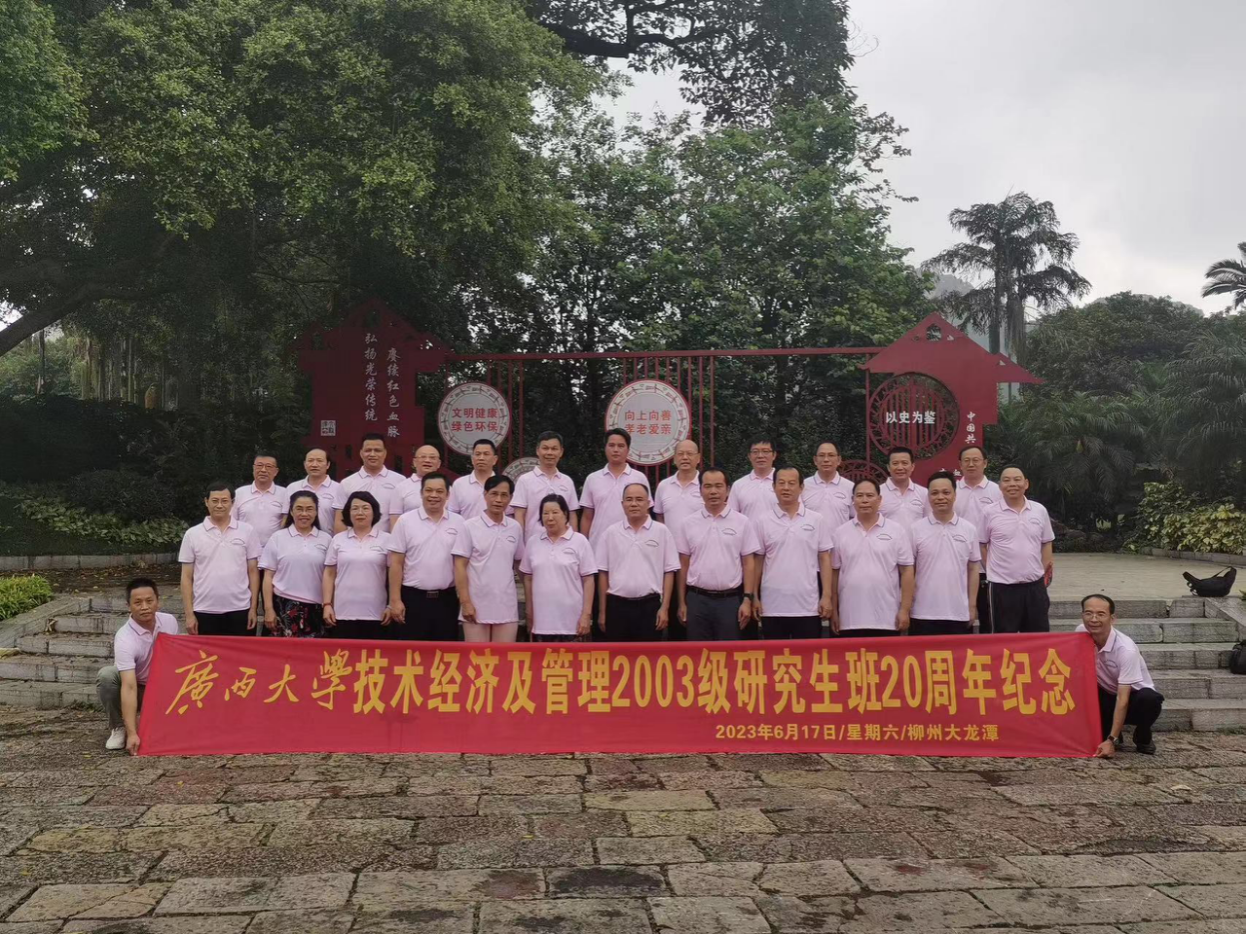 6月17日,广西大学技术经济及管理2003级研究生班(柳州班)20周年纪念活动在柳州大龙潭公园举行,活动围绕“边照相、边交流、边唱歌、边朗诗、边听歌“——即“五边”的主题开展。我院副院长陆翔及陆柳荣等教师代表参加了本次活动。
