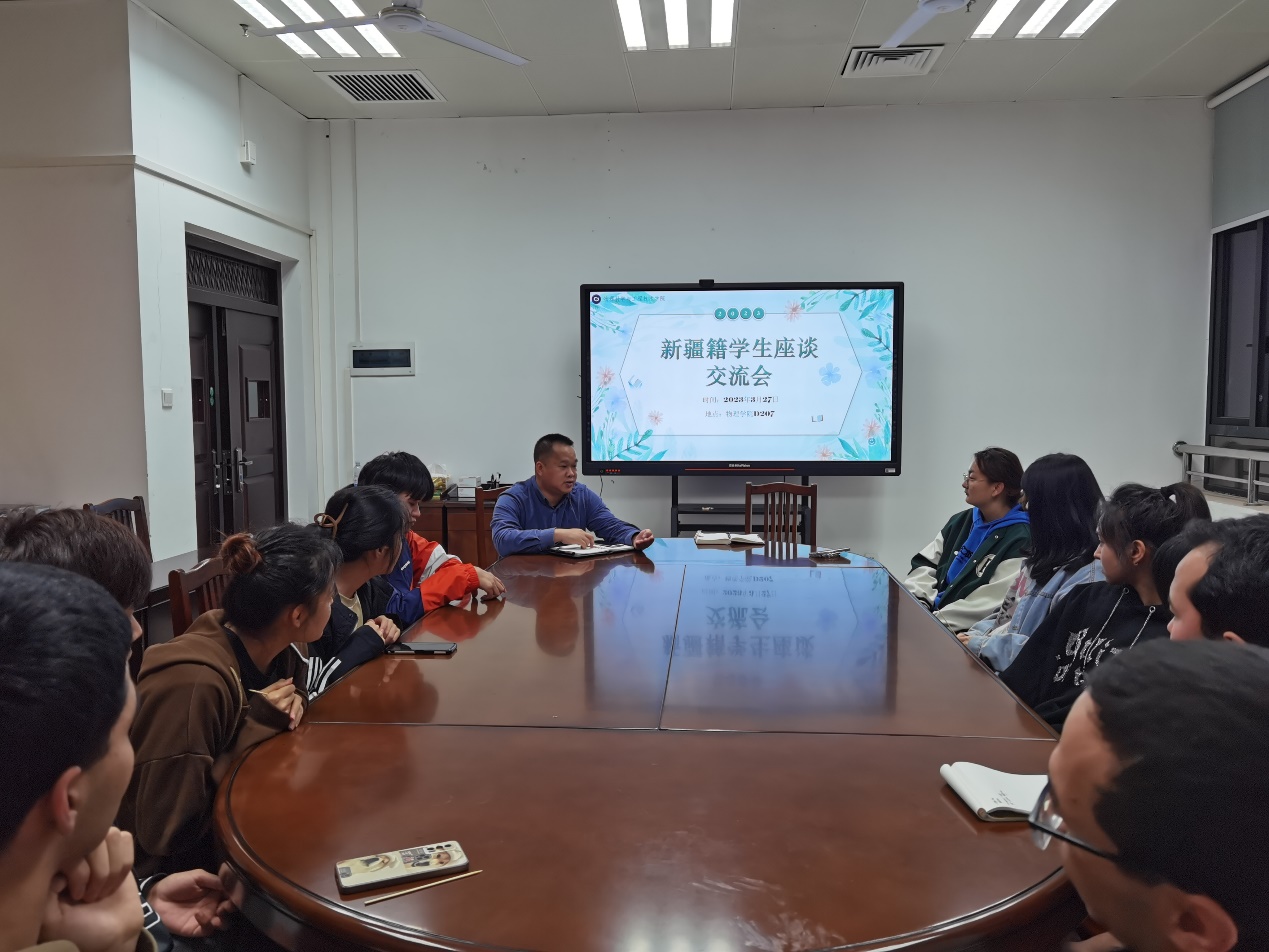 2023年3月27日,我院组织召开全体新疆籍学生座谈会,各年级来自新疆内高班的同学和辅导员参加本次座谈。座谈会由院党委副书记蒋津辉主持。