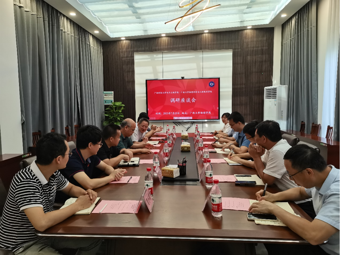 7月25日,广西科技大学电子工程学院党委书记朱广生一行8人到我院就学科与专业建设等工作开展调研交流。校党委常委、副校长、物理学院院长梁恩维出席座谈会,学院党委书记袁涛主持会议。