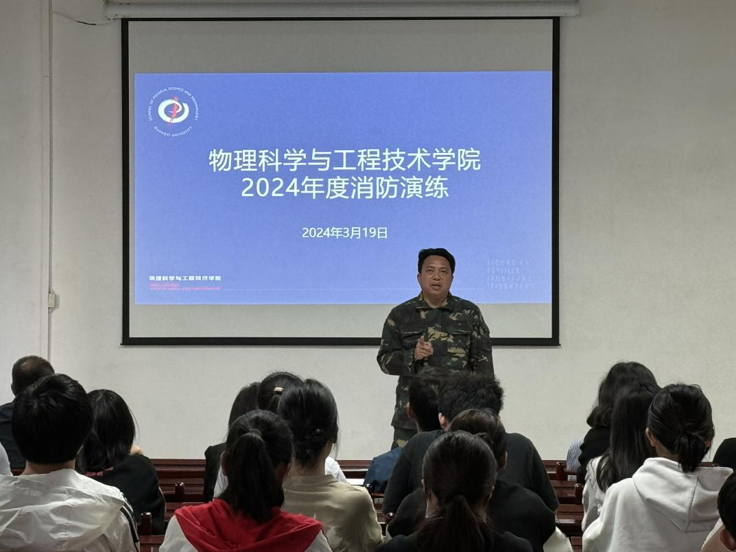 此次消防演练分为理论与实操两个部分。理论部分由副院长陆翔主持,保卫处黄光电主讲。陆副院长表示学院一直高度重视消防安全工作,各实验室定期组织师生开展相关安全和实验操作技能培训,严把实验室准入和安全检查,并希望大家认真对待,积极参与此次演练。黄光电老师为大家讲解消防知识。内容主要分为消防安全知识科普,火灾预防的基本概念,灭火的基本方法,火场逃生知识指南四个部分。