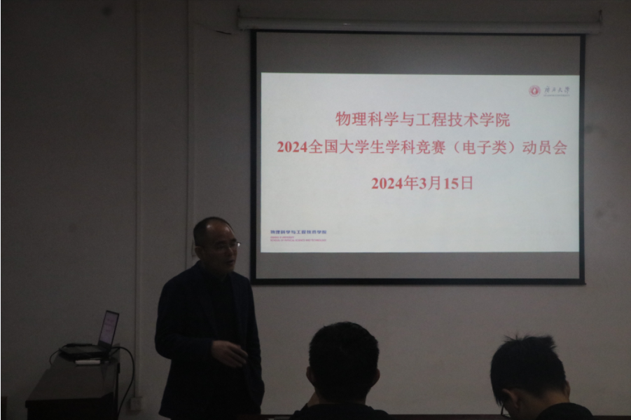 2024年全国大学生各类学科竞赛陆续拉开帷幕,为营造良好的竞赛氛围,提升学生创新实践能力,动员同学们积极参加电子类学科竞赛,我院于3月15日在物理楼A506会议室举行了学科竞赛(电子类)动员会,电子科学与技术、集成电路系统与集成、物理电子创培班等专业的学生参加,副院长、物理实验中心主任陆翔出席会议。