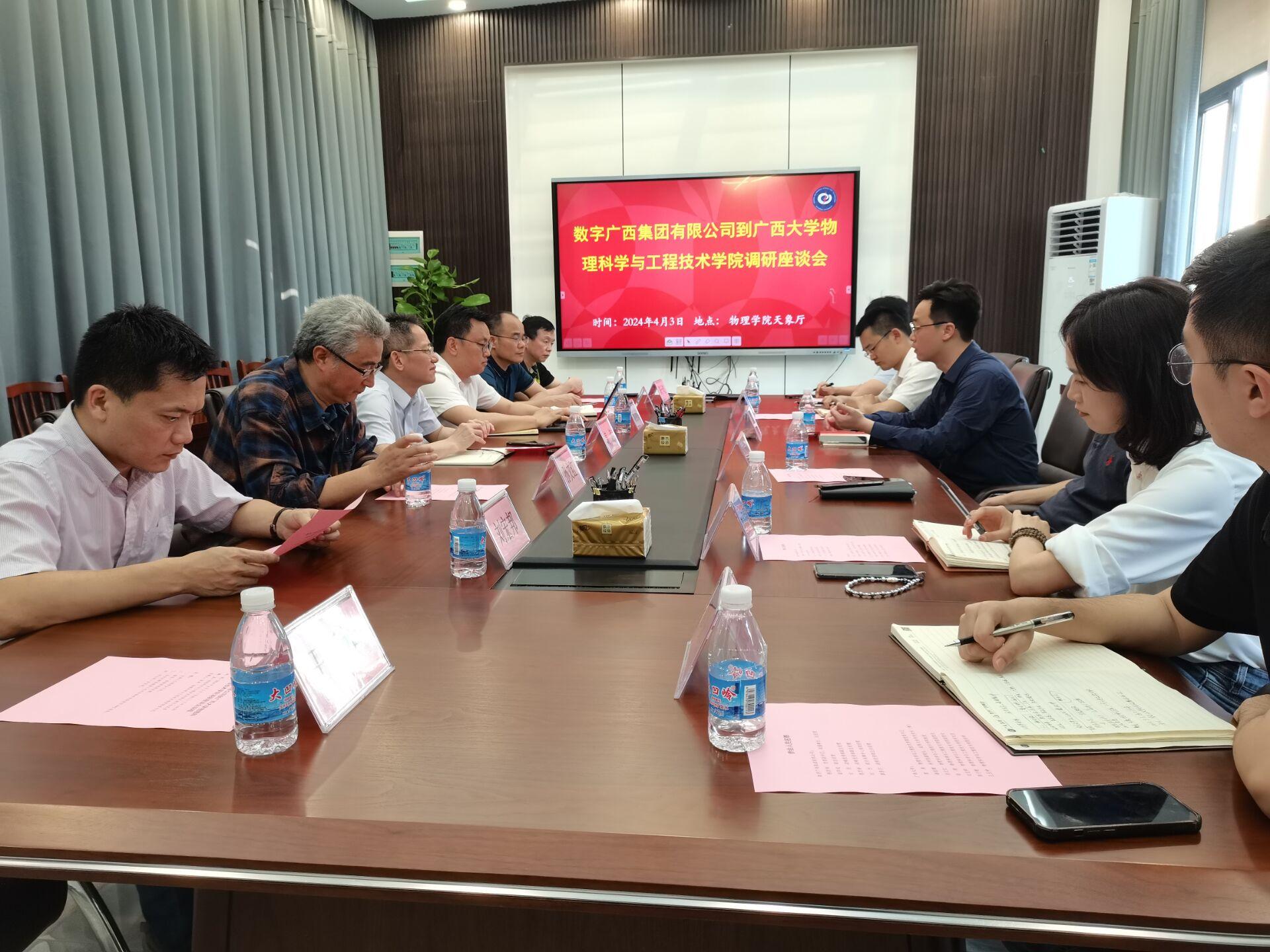 数字广西集团有限公司战略投资部、综合保障中心等部门相关人员,我校科研院、物理科学与工程技术学院等部门相关人员参加交流活动。