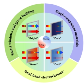 电致变色(EC)技术正日益成为智能窗、彩色显示器、光学滤波器和可穿戴伪装设备等领域的核心驱动力。然而,其发展面临稳定性不足和色彩选择有限两大瓶颈。最新研究表明,通过引入等离子体基EC材料设计,可显著提升设备的稳定性和色彩范围,为新一代高性能EC设备奠定基础。此外,双波段电致变色智能窗(DESWs)通过独立调节可见光和近红外热量的透射率,大幅降低建筑中的照明与温控能耗,有望成为建筑节能技术的全新突破点。尽管面临诸多挑战,如材料耐用性、响应速度及生产成本,研究团队通过优化结构设计、开发新材料及探索规模化生产路径,推动EC技术向商业化迈进。作为零碳建筑和智能设备的关键技术,电致变色技术的持续创新将为现代社会的可持续发展提供重要支持。